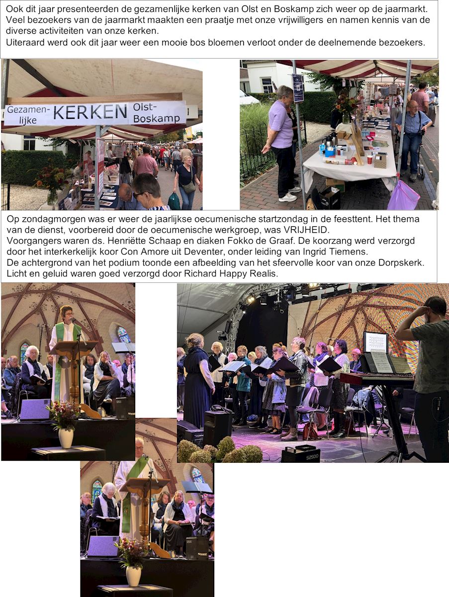 - We organiseren vier keer per jaar een oecumenische dienst, afwisselend in de St. Willibrordkerk in Boskamp of in de Dorpskerk in Olst.