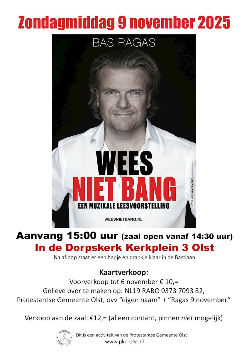 Bas Ragas komt op zondagmiddag 9 november (gewijzigde datum!) naar de Dorpskerk in Olst.